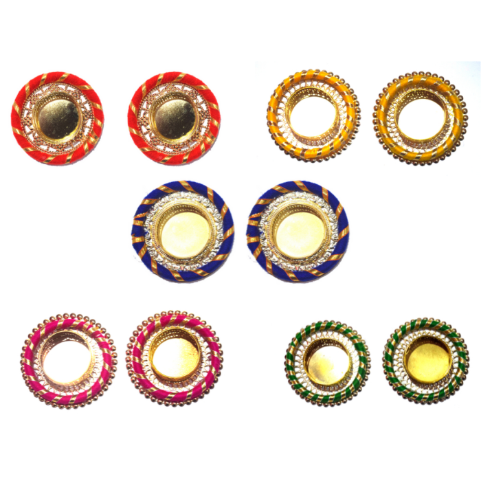 This pair of decorative tealight platter is designed on the metal base medium sized circular plate which is of 3 inches in diameter. The package is provided with a pair of smokeless candles that can be illuminated like usual candles. You can use the decorative platters in the temples as well as to decorate around your rangolis. You can also add LED lights to illuminate your diya holders.