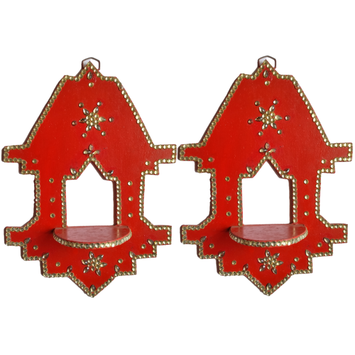 Wall Mounted diya stands are to beautify the entrance of your home. These Jharokha style door hangings cum diya holder are provided with placement to keep a diya (earthern lamp). You can keep a small diya, battery tealights as well as wax tealights to lighten up your home's or organization's entrance. We recommend you to keep a small diya if using traditional clay diya, to keep the decorations getting affected from the flame.