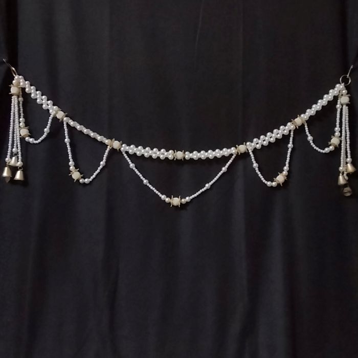 Knotted Pearl Toran with Bells and Beaded Accents