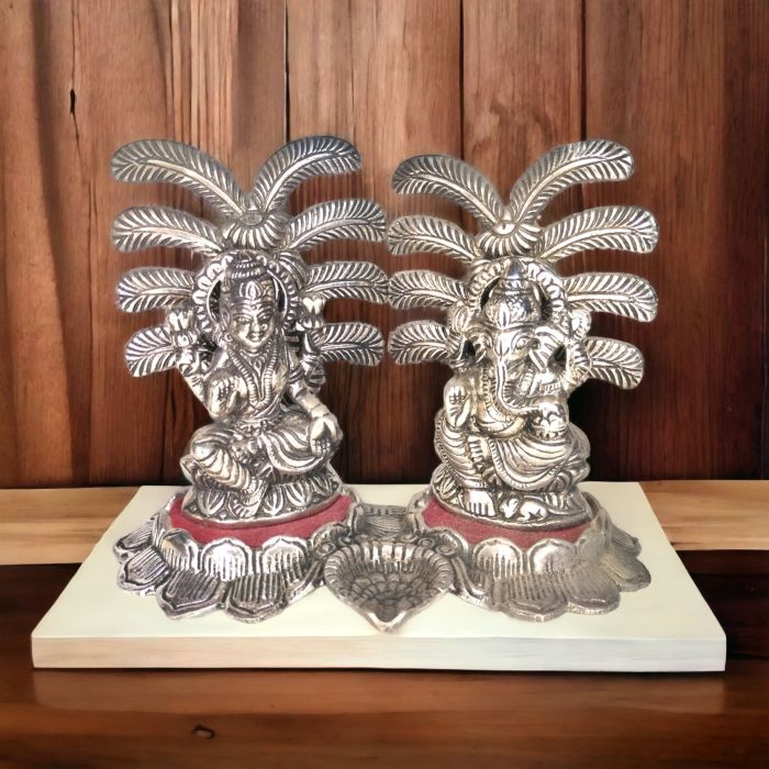 Description / Lord Ganesha & Goddess Lakshmi Idol for Diwali Pooja - 5.5 inches (Oxidized Metal, Silver)