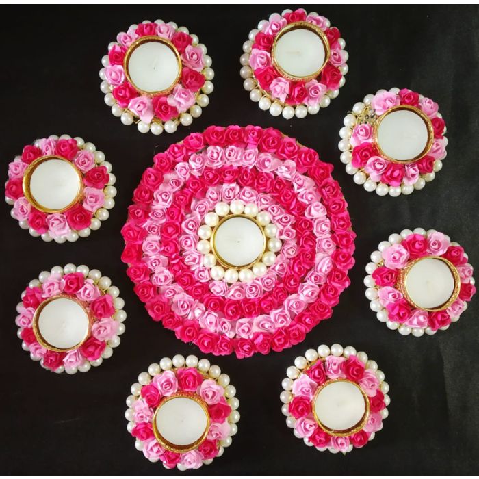 Pink Decorative tealight platters for Diwali | Set of 9