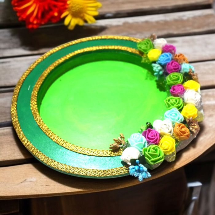 Multipurpose decorative platter: Our floral decorative platter is easy-to-carry, sturdy, and available in varying colors. You can use it for pooja, as a swagat platter, and for festive celebrations.