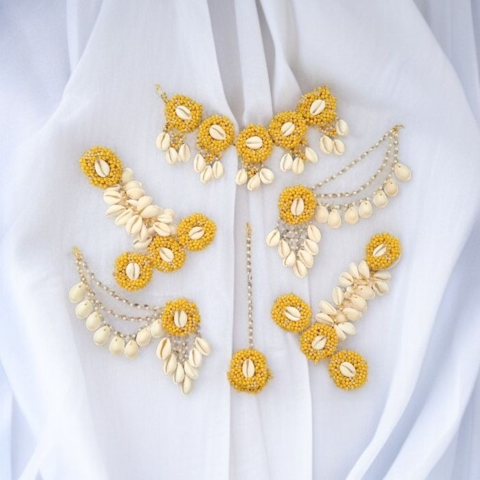 - Perfect for: Experience the bridal vibes and style flawlessly on your haldi ceremony wearing our shell jewellery set.